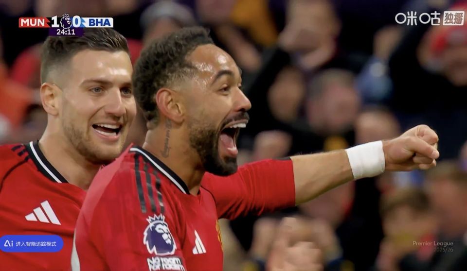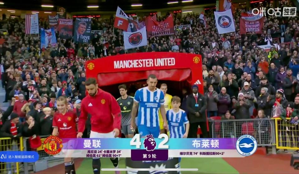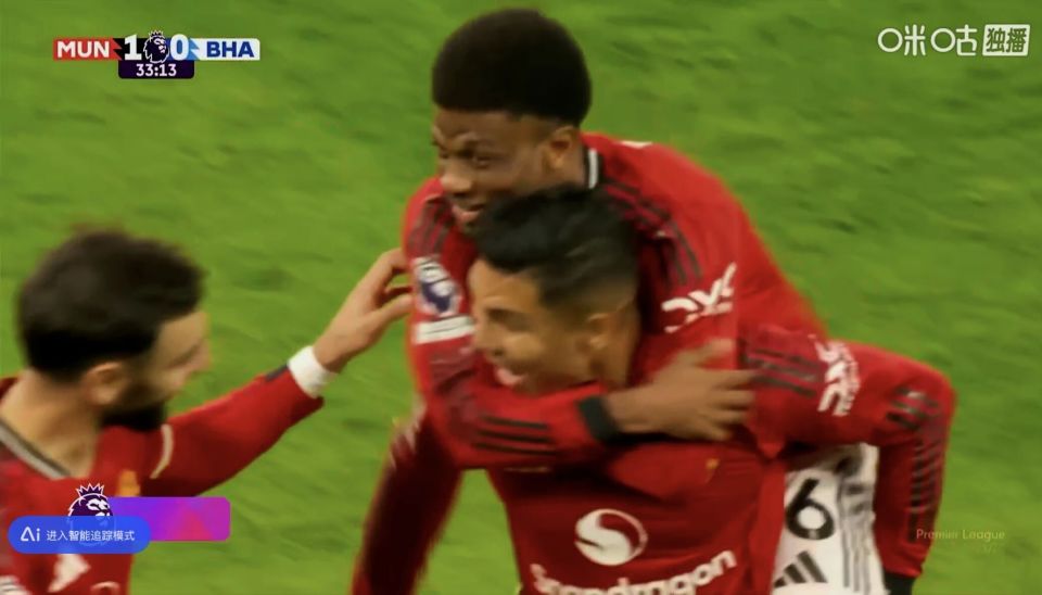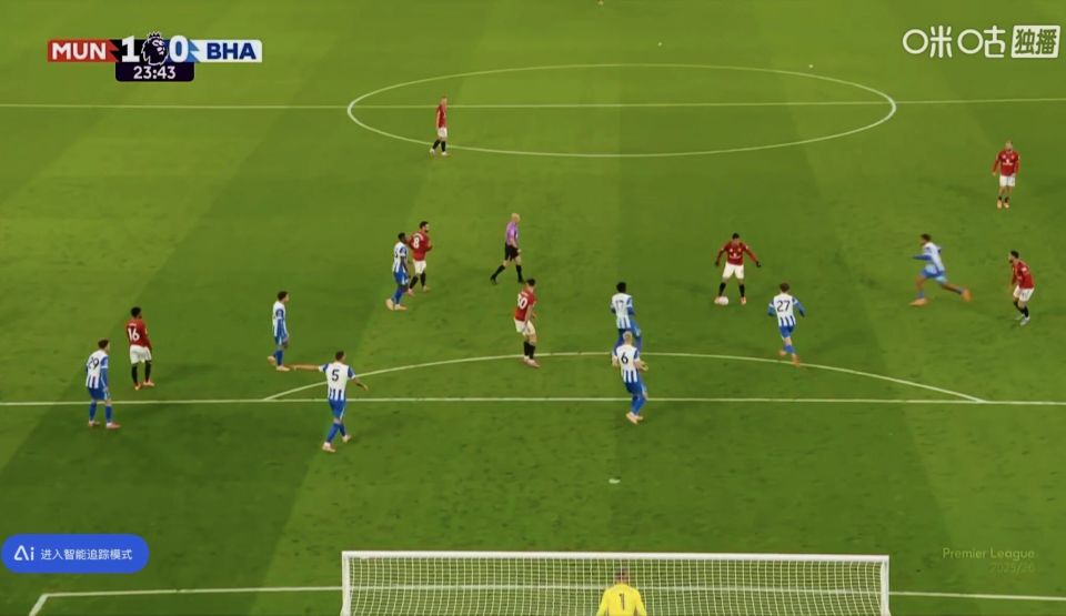 上半场第24分钟,库尼亚兜射破门,曼联1比0布莱顿,第34分钟,卡塞米罗在禁区外突施冷箭,皮球击中防守球员折射入网,曼联2比0布莱顿。